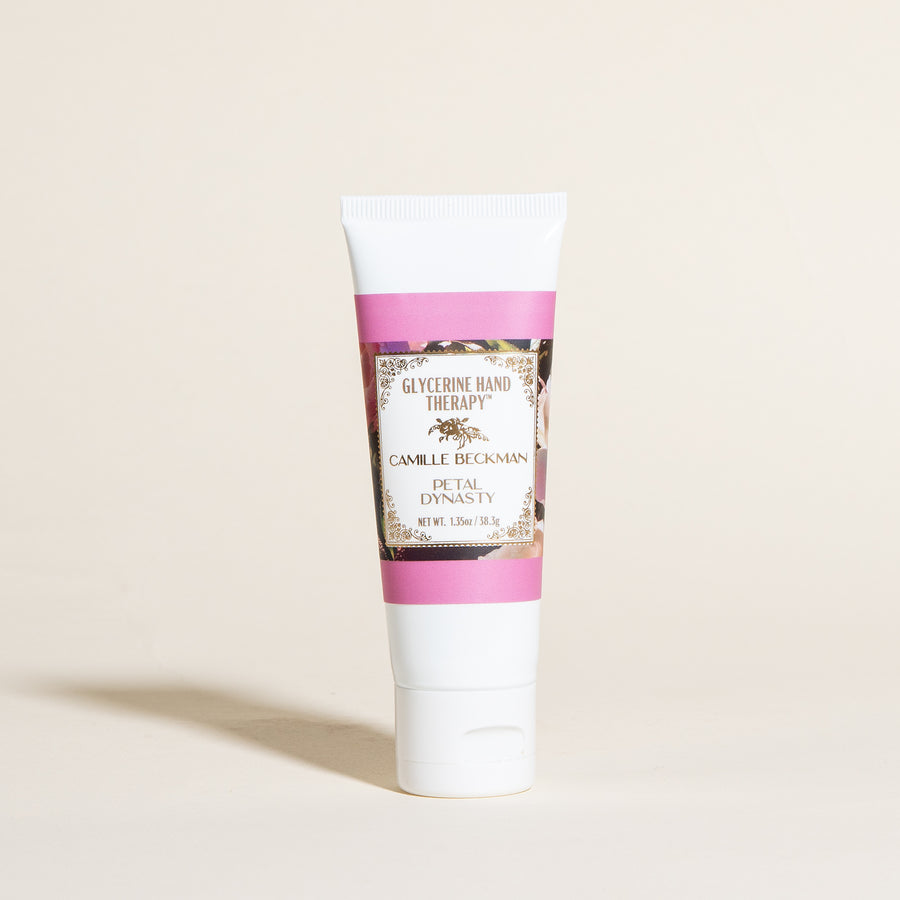 Glycerine Hand Therapy™ 1.35oz Petal Dynasty is a deeply hydrating, pocket-sized hand cream that repairs and restores even the driest, most troubled hands. Formulated with food-grade glycerin, sweet almond oil, and a signature herbal complex, it quickly penetrates skin to deliver instant relief and lasting softness without leaving a greasy residue.